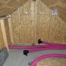 3 pipes to the left are fresh air going to living room, dining room , spare bedroom. 2 pipes to the right is hot air leaving the kitchen.