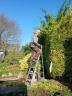 Silly old duffer survived to tell the tale. No elderly gentlemen were harmed in the making of this photo. This was when he was only half way up, later he was on the top of the extended ladder, leaning over the top of the hedge, height wasn't a worry, the lack of ladder foot room was. The hedge has gotten out of control, his health didn't allow the work last year and we're reaping the result this year. Both green bins are full, hedge has hardly been touched. Sobering.