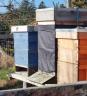 A bee or wasp - British black bees (honey bee). There first proper day out of the year. Very good to see.